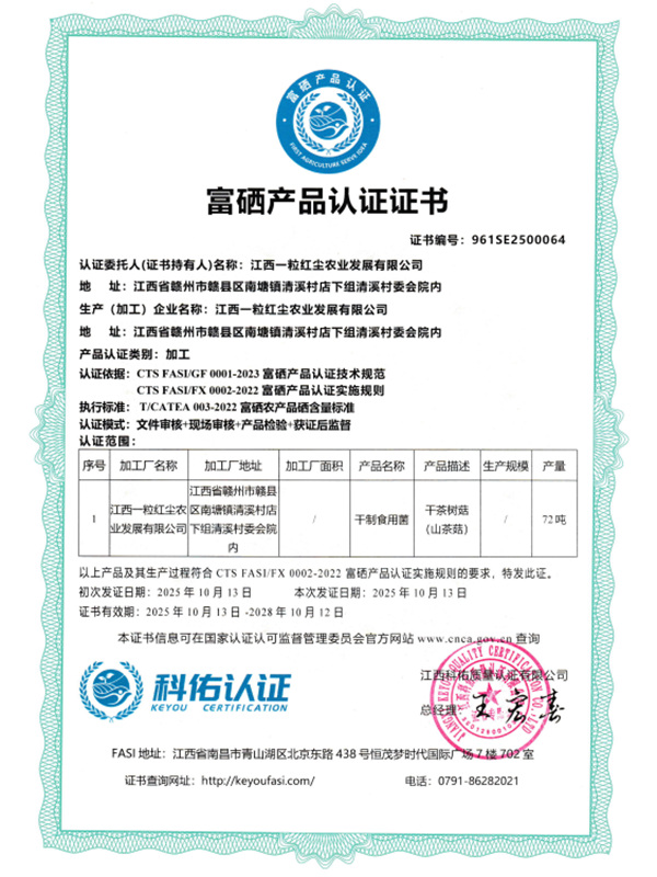 江西一粒紅塵農(nóng)業(yè)發(fā)展有限公司是一家總部位于江西省贛縣的現(xiàn)代農(nóng)業(yè)多元型企業(yè),專注于食用菌的研發(fā)、種植、深加工、貿(mào)易、研教培、農(nóng)文旅等全產(chǎn)業(yè)鏈發(fā)展。公司秉承“健康、綠色、共享、共贏”的核心價值觀,致力于引領鄉(xiāng)村振興之路,旨在成為......
